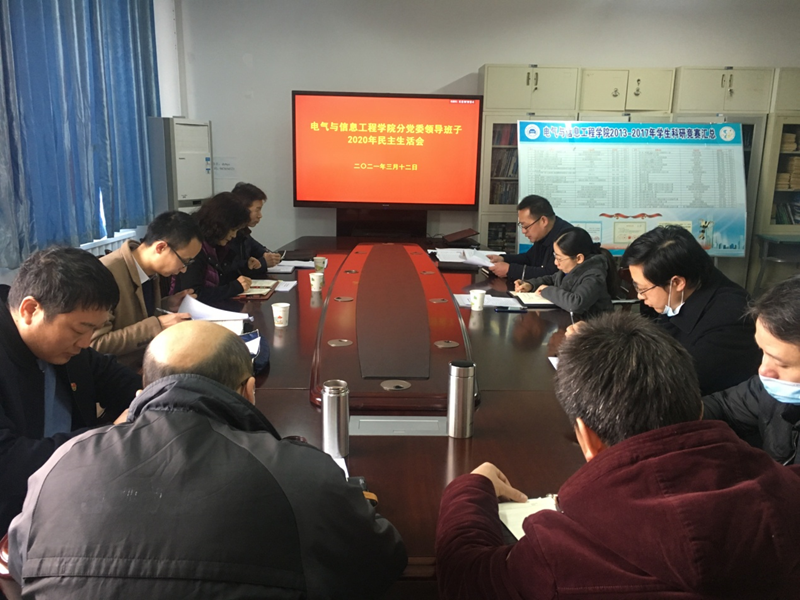 本网讯(文/王新)3月12日上午,电信学院在S6521召开2020年度分党委领导班子民主生活会。会议由分党委书记周鹏主持。学校二级党组织民主生活会第四督导组校纪委书记林雪荣、副书记韩晓、组织(统战)部办公室主任肖越三位同志到会督导。