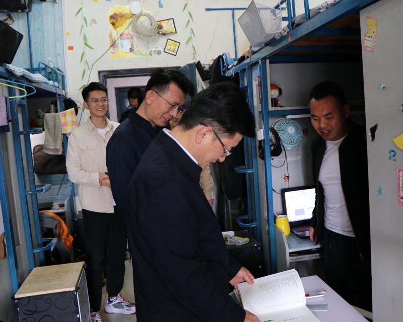 张文学每到一间宿舍,对学生们进行了亲切询问,了解同学们的学习生活情况,重点关心询问了毕业班同学的考研就业情况并提出建议,同时仔细查看了宿舍卫生状况、桌椅床柜基础设施、室内通风、用电安全等情况;在与同学们的交流中他反复强调提醒宿舍是学习的重要阵地,要共同爱护维护宿舍良好环境,多开窗通风、做好室内清洁,坚持养成良好的个人卫生习惯。在走访中,当了解到车院某专业学生因几分之差未能通过英语四级考试,张文学就如何备考四级讲述备考励志微故事,给出贴心实用的学习建议,鼓励同学备考时要掌握正确的英语学习方法,增强信心提高学习效率,争取下次考过。