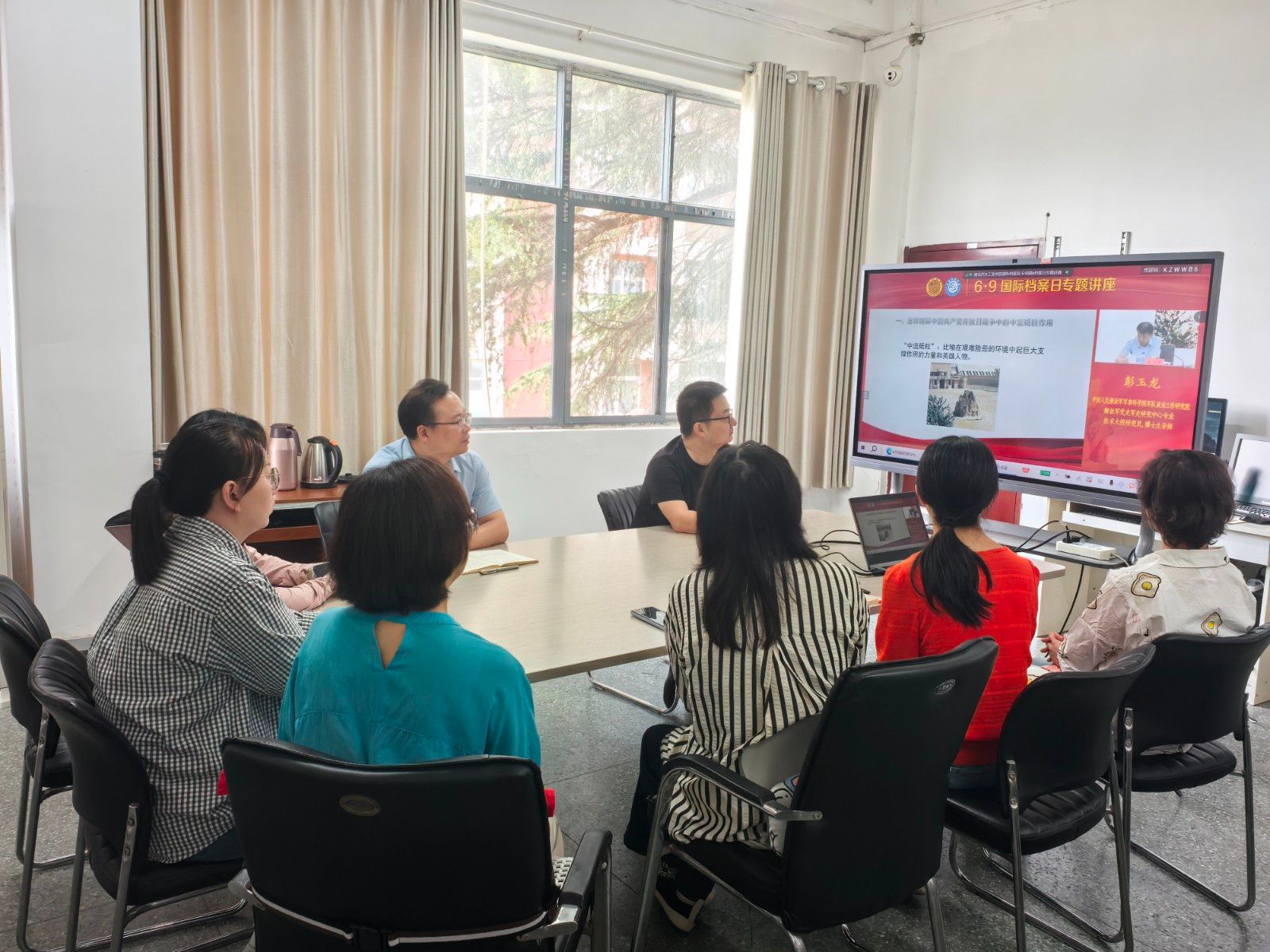 当日上午,图书馆(档案馆、校史馆)还组织全校60余名人员专、兼职档案员和立卷员在线观看了《人民的选择 历史的必然——中国共产党在抗日战争中是怎样赢得战争赢得人民的?》专题讲座。