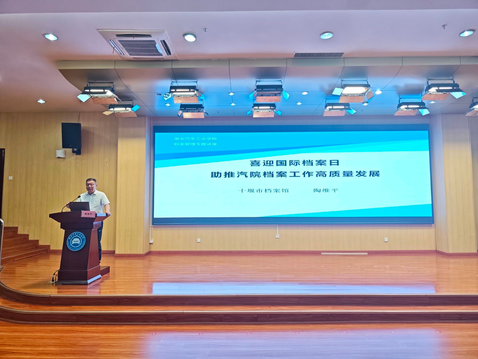 本网讯(文/图 朱晗誉)聚力兰台提质效,服务支点谱新篇。6月9日,在第十八个“6·9国际档案日”来临之际,学校图书馆(档案馆、校史馆)邀请国家档案专家、十堰市档案馆二级调研员陶维平来校作题为《喜迎国际档案日 助推汽院档案工作高质量发展》的档案专题报告,活动由馆长张慧主持。学校档案馆馆员、二级单位专兼职档案员(立卷员)以及相关专业学生共80余人参与活动。